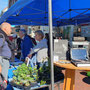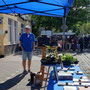 NABU Infostand "Insekten retten!" auf dem Huder Wochenmarkt. Mai 2019